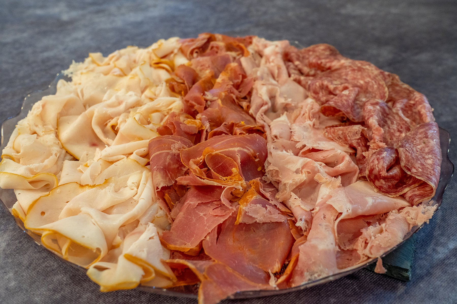 Assortiment de 3 à 4 charcuteries. Un régal pour l'apéritif ou pour un repas dinatoire.