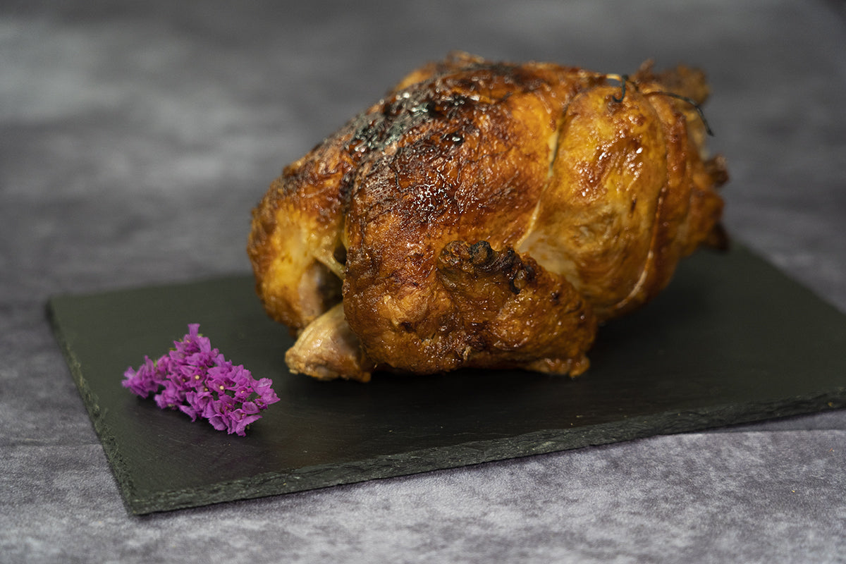 Volaille entière rôtie pour une famille de 3 à 4 personnes, Nous vous recommandons de l'accompagner avec des pommes de terre et des crudités. Attention ce produit nécessite 4h de préparation pendant les heures d'ouverture de la boucherie.
