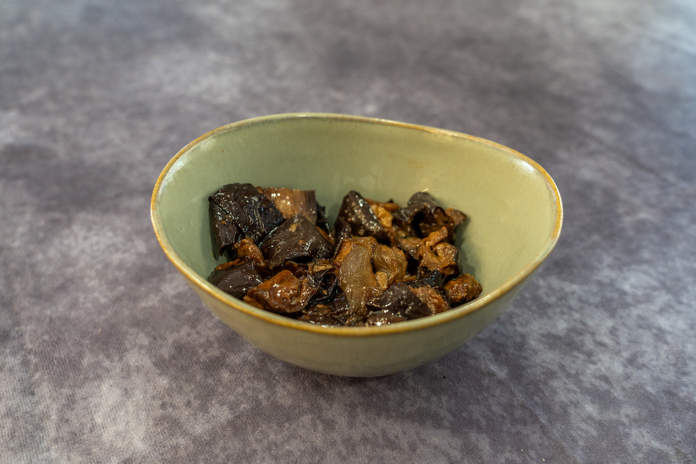 Salade d'aubergines frites et assaisonnées, spécialement réalisée par Jerry pour Pessah.