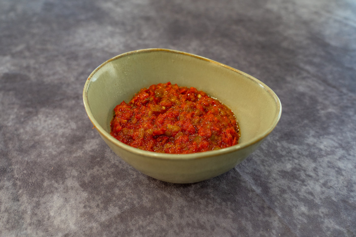 Salade de tomates et poivrons grillés et hachés avec de huile d'olive.
