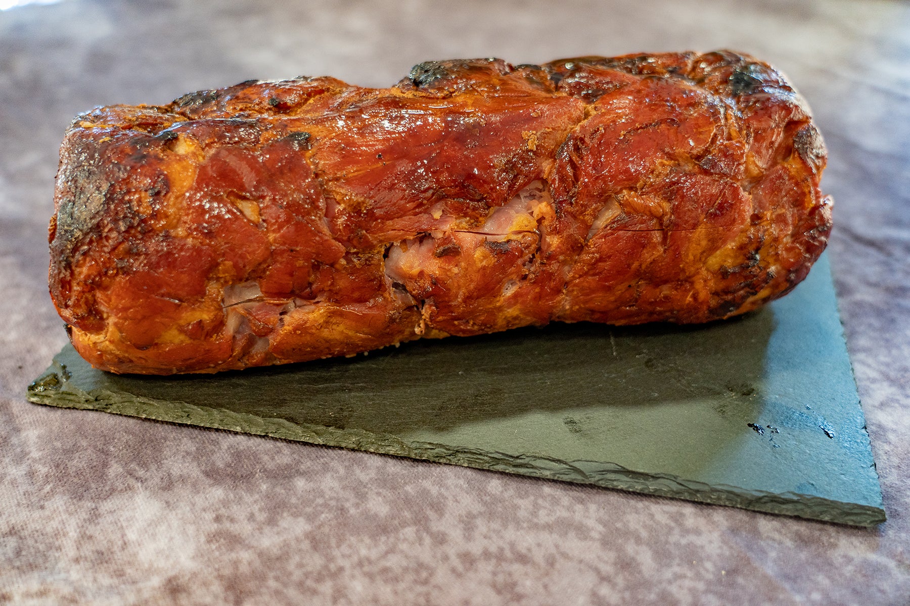 C'est la spécialité de la Boucherie Lévy, du veau cuit façon barbecue avec sa sauce et un peu de dinde pour garder la viande bien moelleuse. À manger chaud ou froid, en brunch avec des oeufs par exemple. Magnifique ! Les tranches sont souvent mises sous-vide (mandoline bacon) pour être dégustées quand vous voulez!